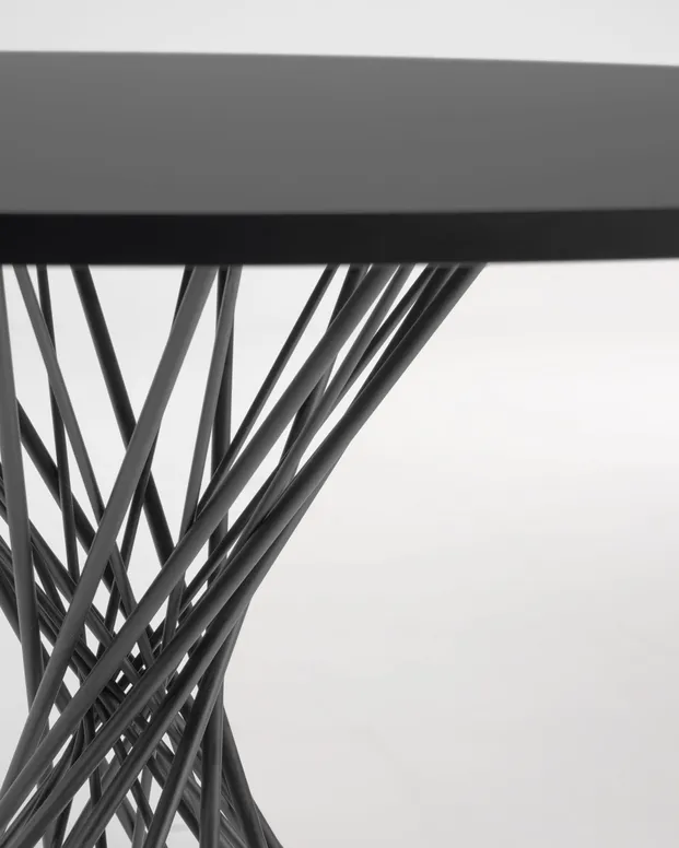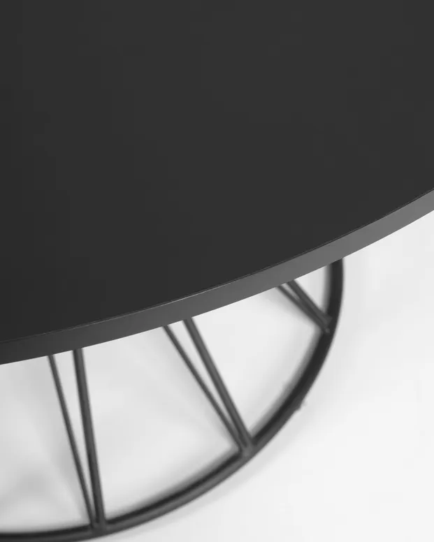 Okrągły stół Niut z lakierowanej czarno płyty MDF czarne wykończenie stalowe nogi Ø120cm